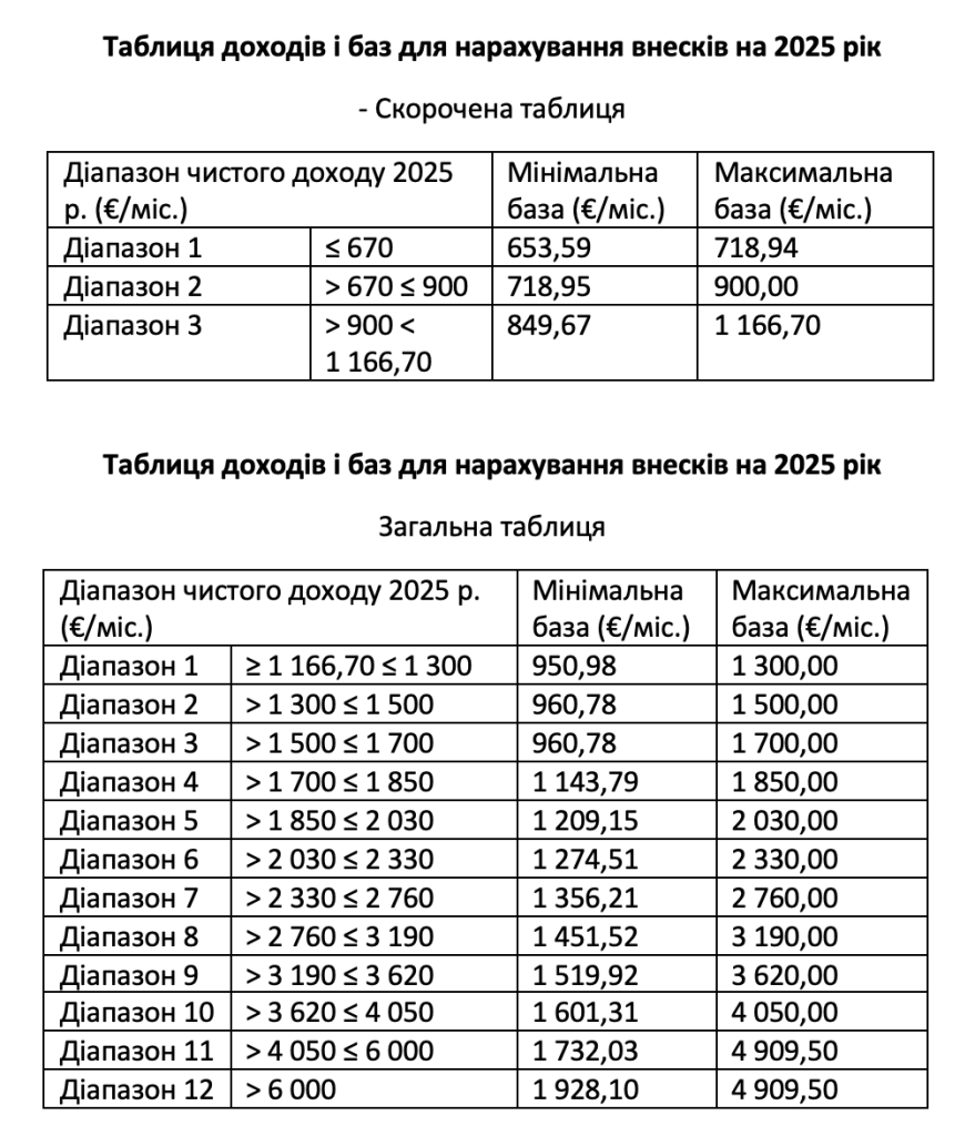 Важливо: до обраної бази застосовується ставка 31,40 %, щоб отримати суму щомісячного внеску.